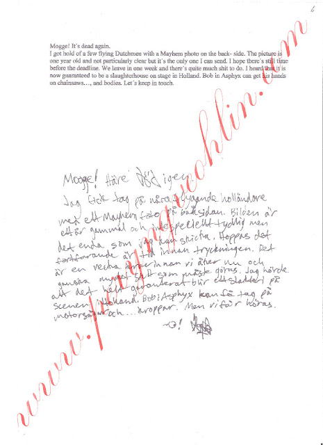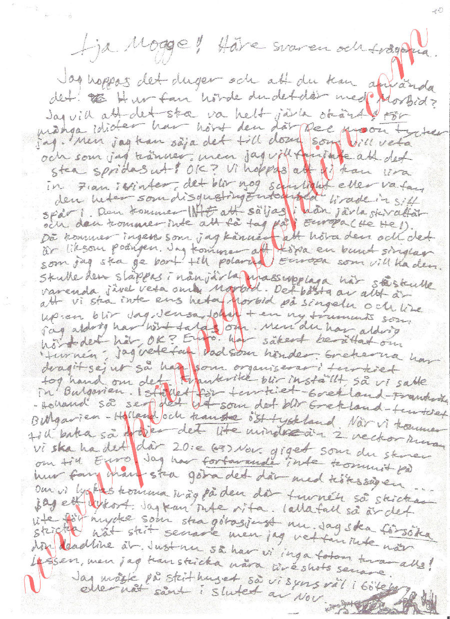 I hope you are okay and that you can use. How the hell did you hear about Morbid? I want it to be unknown fuck! I think too many idiots have heard from some. But I can say to those who want to know and I know, but I do not want to spread it! Ok? We hope that we can achieve a 7" in the winter when there is enough sunlight, or whatever it's called, like Entombed disgusting that they were playing on his feet inside. Will not be sold in record stores fuck and you can not have it in Europe (hehe!). Then no, I've heard it can get. I want to buy a lot of individuals who give away for a few friends in Europe who want it. Would there be a big spread here, so that every son of a bitch would know Morbid. The best thing of all is that we should not single out Morbid if not in the original line up. I Jensa, John a new drummer that I've never heard of. But you've never heard of this, okay? Euro. I've probably told the "turning point", what happens if the Greeks extracted grains so he who organize in Turkey, you take care of it. France has been canceled, so we opted for Bulgaria. Instead of Turkey-Greece-France-Netherlands and perhaps Germany. When we get to cook, so it takes a little 'less than 2 neckor before, so you've got it, 20 (4?) Concert November you wrote to Euro. I have not yet figured out how the hell do I cook when I'm hungry. If we miss on that tour, I'll send you a postcard. I can not draw. However, it is out there for jewelry to be made at the time. I will try to send shit later, but I do not know where the fuck your year expires. At this time we do not have pictures, unfortunately for everyone! I'm sorry, but I can send live shots later. I have the latrine so we are clearly visible in Gothenburg or something at the end of November.